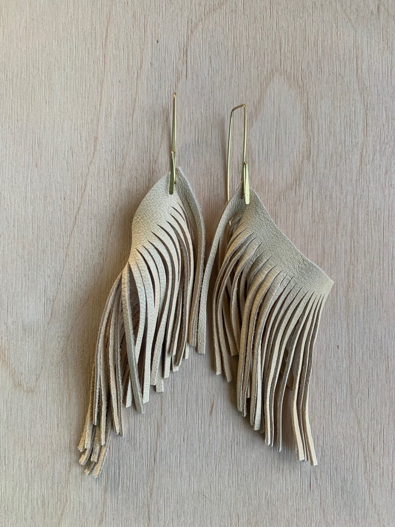 Made from hand cut willow colored Deer leather with hand hammered solid brass.