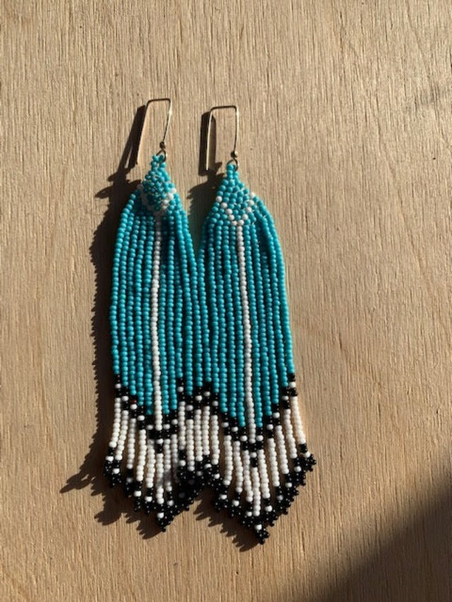 blue, white, and black glass seed beads on sterling silver-plated Copper earring holder, nickel free.