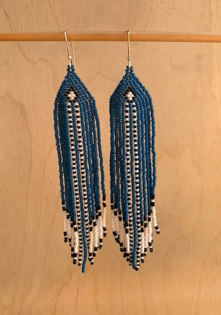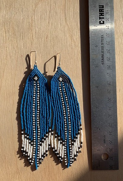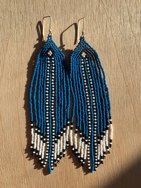 blue, white, and black glass seed beads on sterling silver-plated Copper earring holder, nickel free.