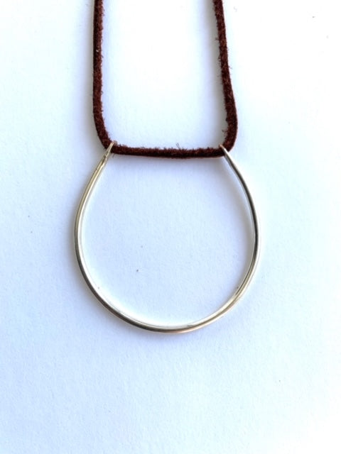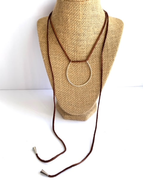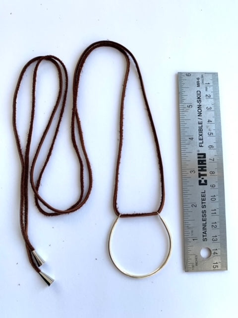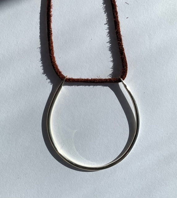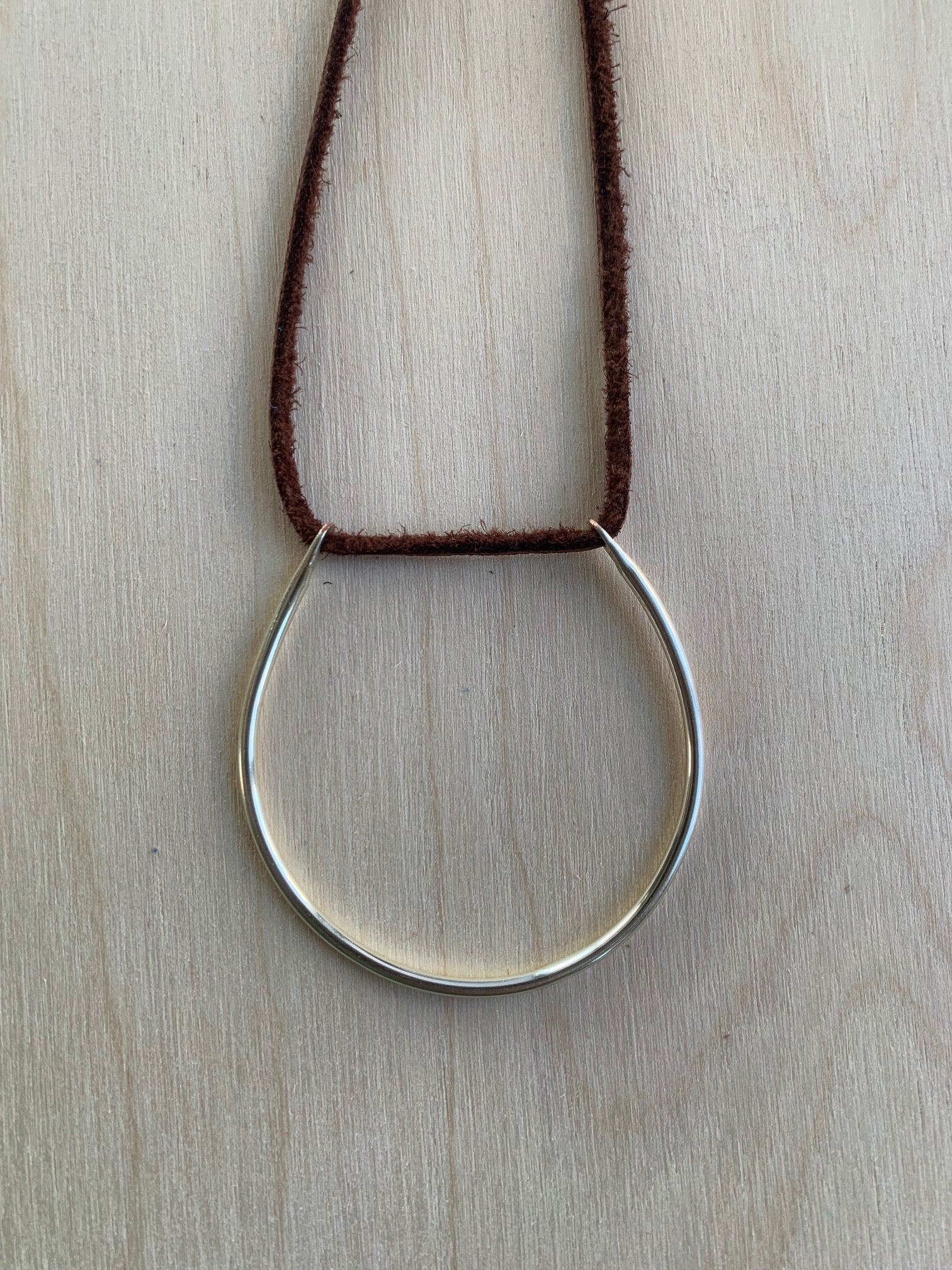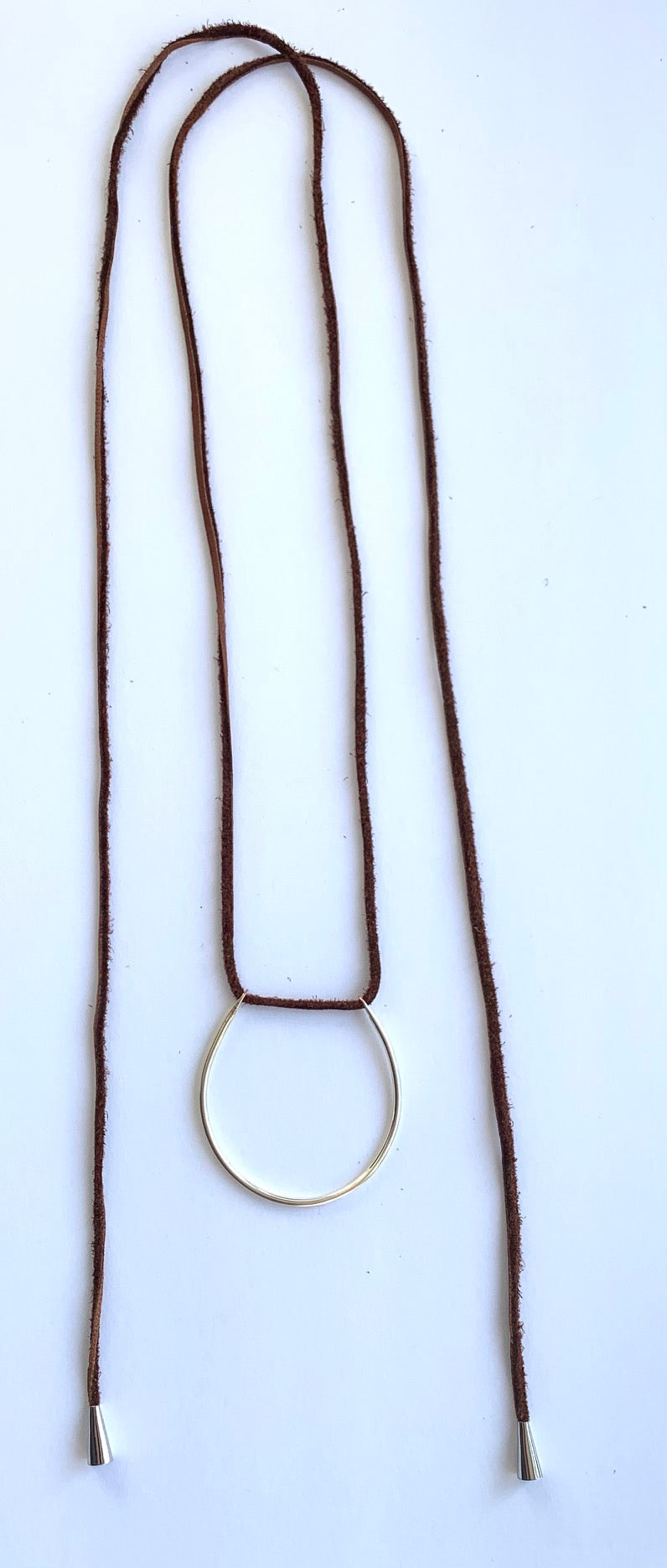 Made from hand hammered silver-plated copper, Brown Deer leather, and silver-plated cones.