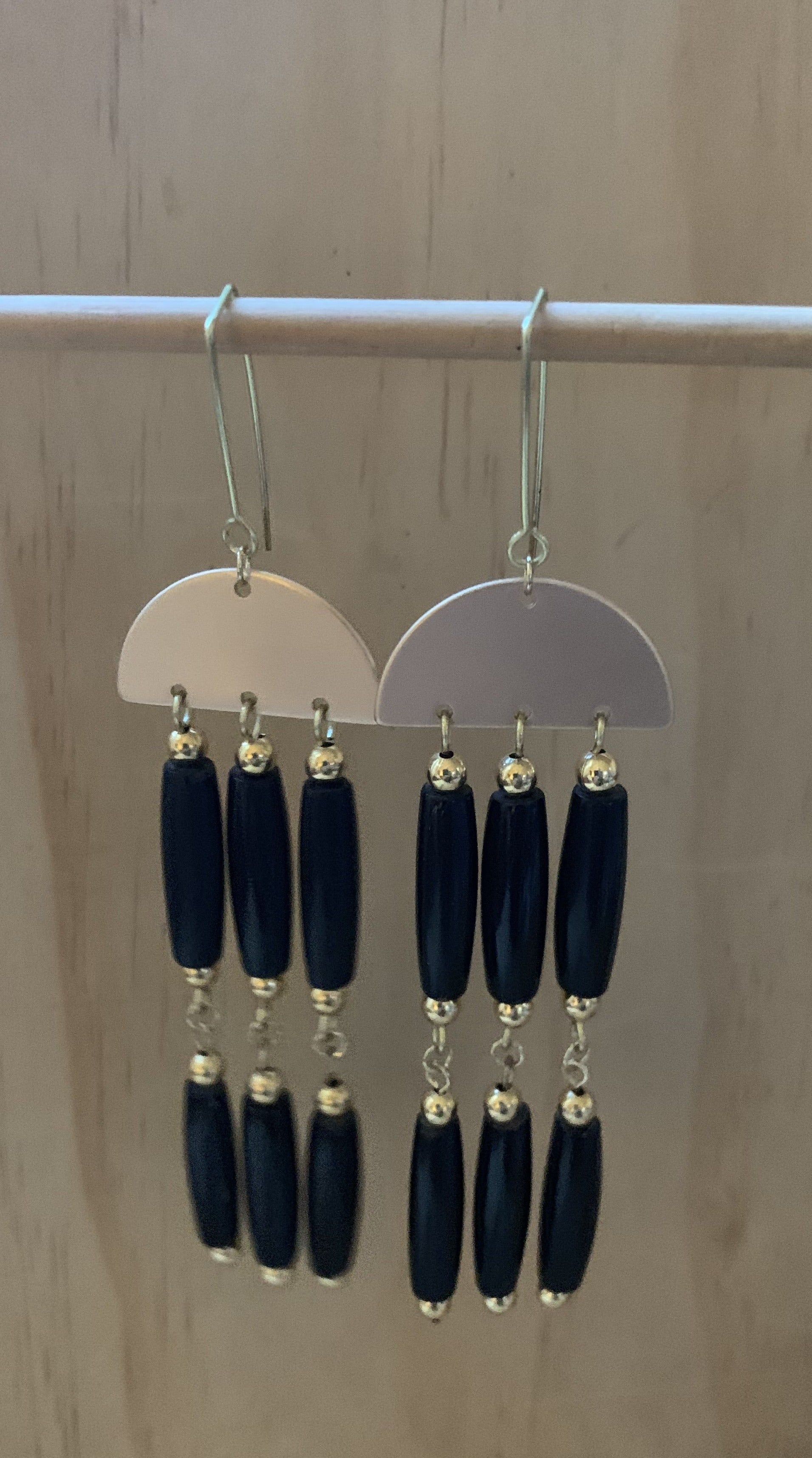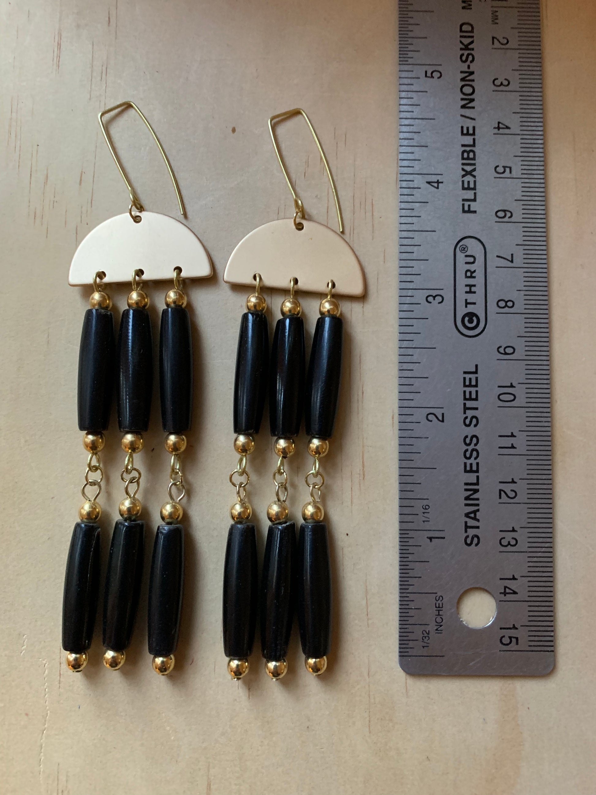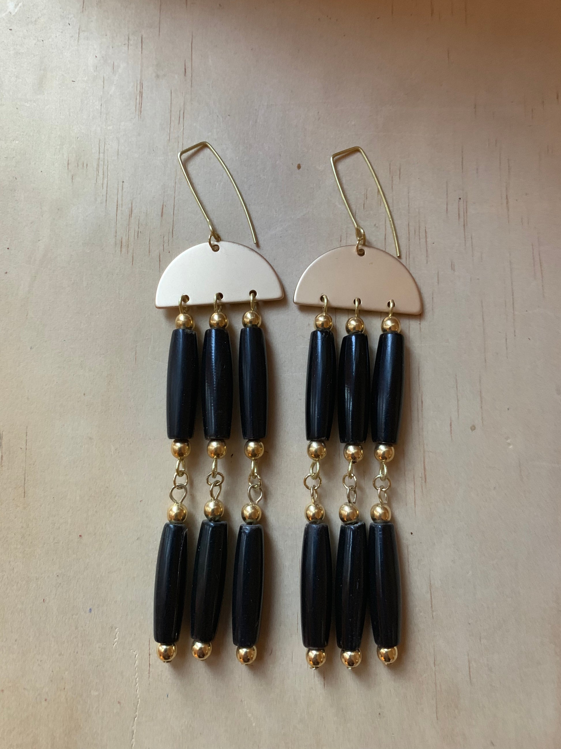 Made from buffalo horn beads, brass beads, on solid brass hand formed earrings holders. no nickle.