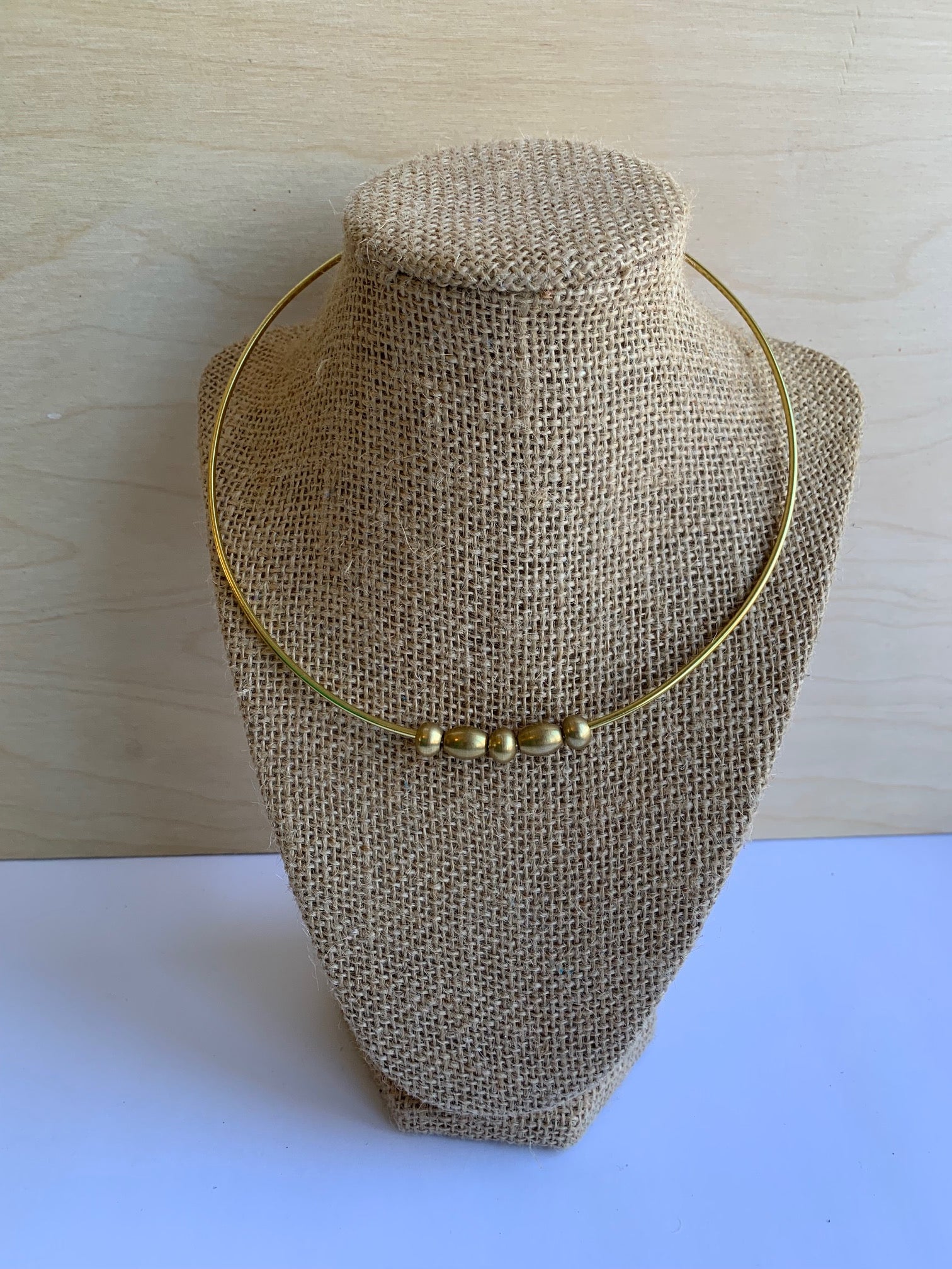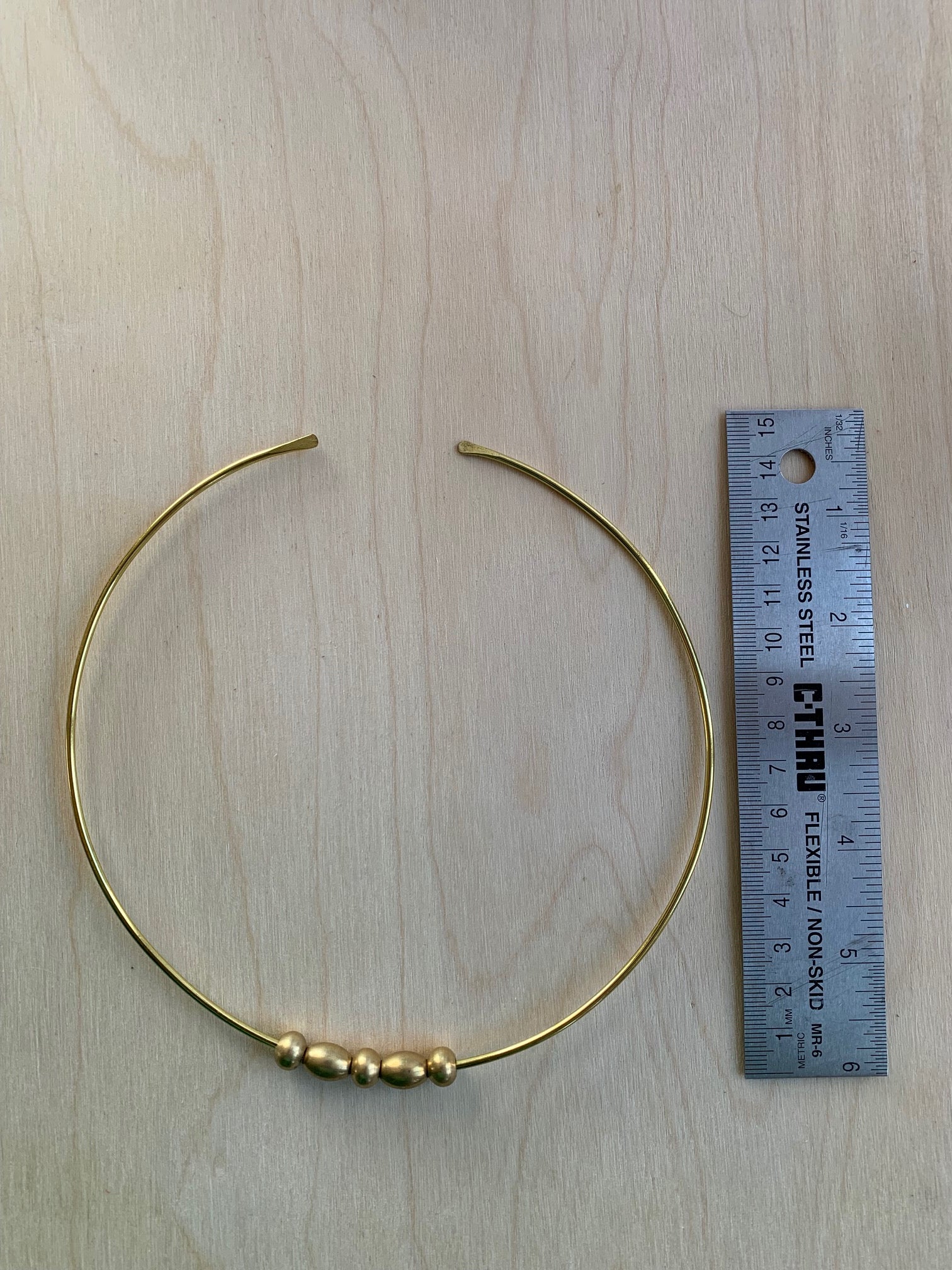hand formed/hammered solid brass with solid brass beads.